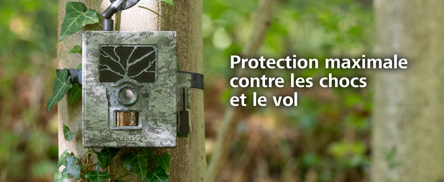 Notre boîtier de protection en métal est parfaitement ajusté et offre à votre ZEISS Secacam 1 une protection sans faille en extérieur. Particulièrement adapté à une utilisation en forêt, sur des terrains privés ou dans des zones très fréquentées, il résiste aux tentatives de vandalisme et de vol et garantit une fixation sûre de la caméra.