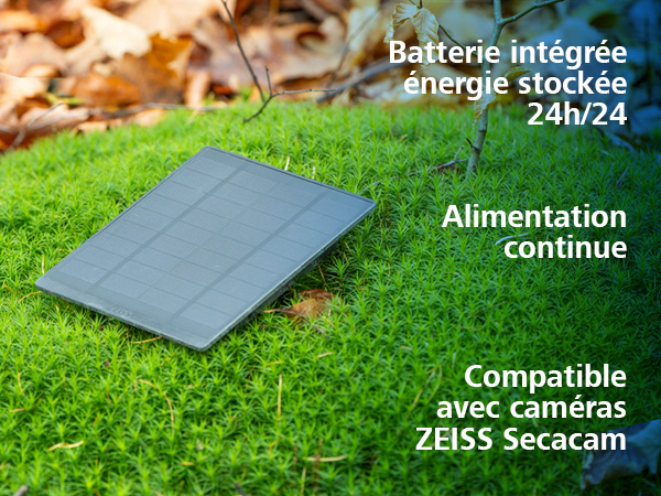 Une source d ́alimentation fiable est nécessaire pour assurer le bon fonctionnement de votre caméra de surveillance. Changer régulièrement les piles prend du temps et engendre des frais supplémentaires. Le Mini Panneau Solaire ZEISS est une solution simple et efficace, avec sa batterie de 5 000 mAh et son long câble de 5 mètres. Il est compatible et fonctionne aussi très bien avec tout appareil nécessitant une alimentation en 12V ou 6V.