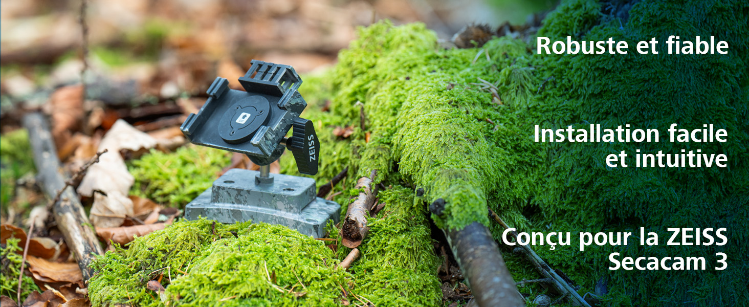 Le Support de Fixation Polyvalent ZEISS vous offre une solution fiable et flexible pour sécuriser et positionner avec précision votre ZEISS Secacam 3 et son panneau solaire ZEISS.